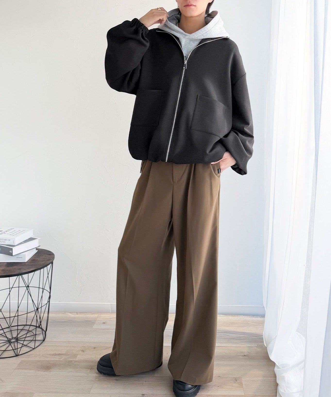 (Unisex) 高領雙拉鍊短褸
